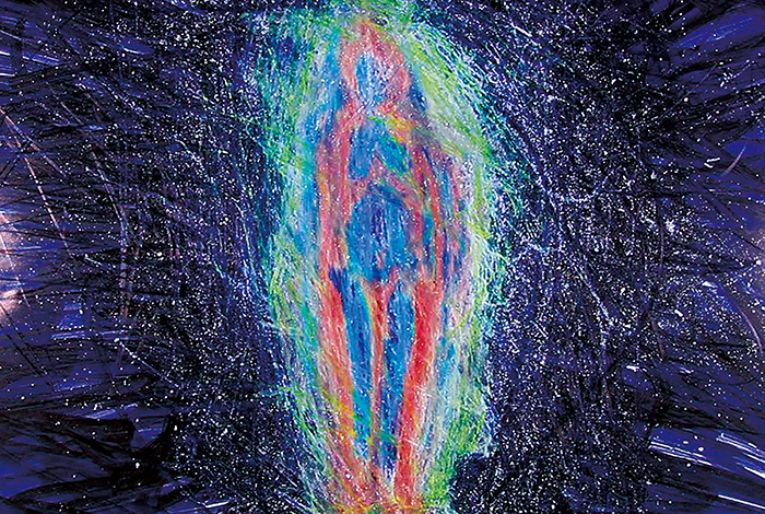 キャンバス、油絵具、油性スプレー