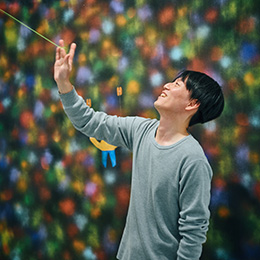 作品審査の段階から、審査員の間では「なぜヨーヨーなのか」「ヨーヨーとは何を象徴しているのか」といった議論が交わされていました。しかし実際に作品を拝見すると、そうした問いを超えて、これほどまでに明るく、開かれた表現であることに、素直な喜びを覚えました。ヨーヨーを「友達」ととらえ、遊びの経験をそのままアートとして表現している点も、非常にポジティブで印象的です。