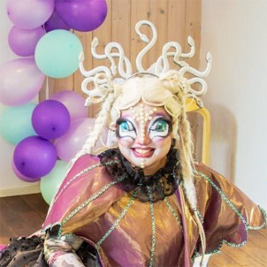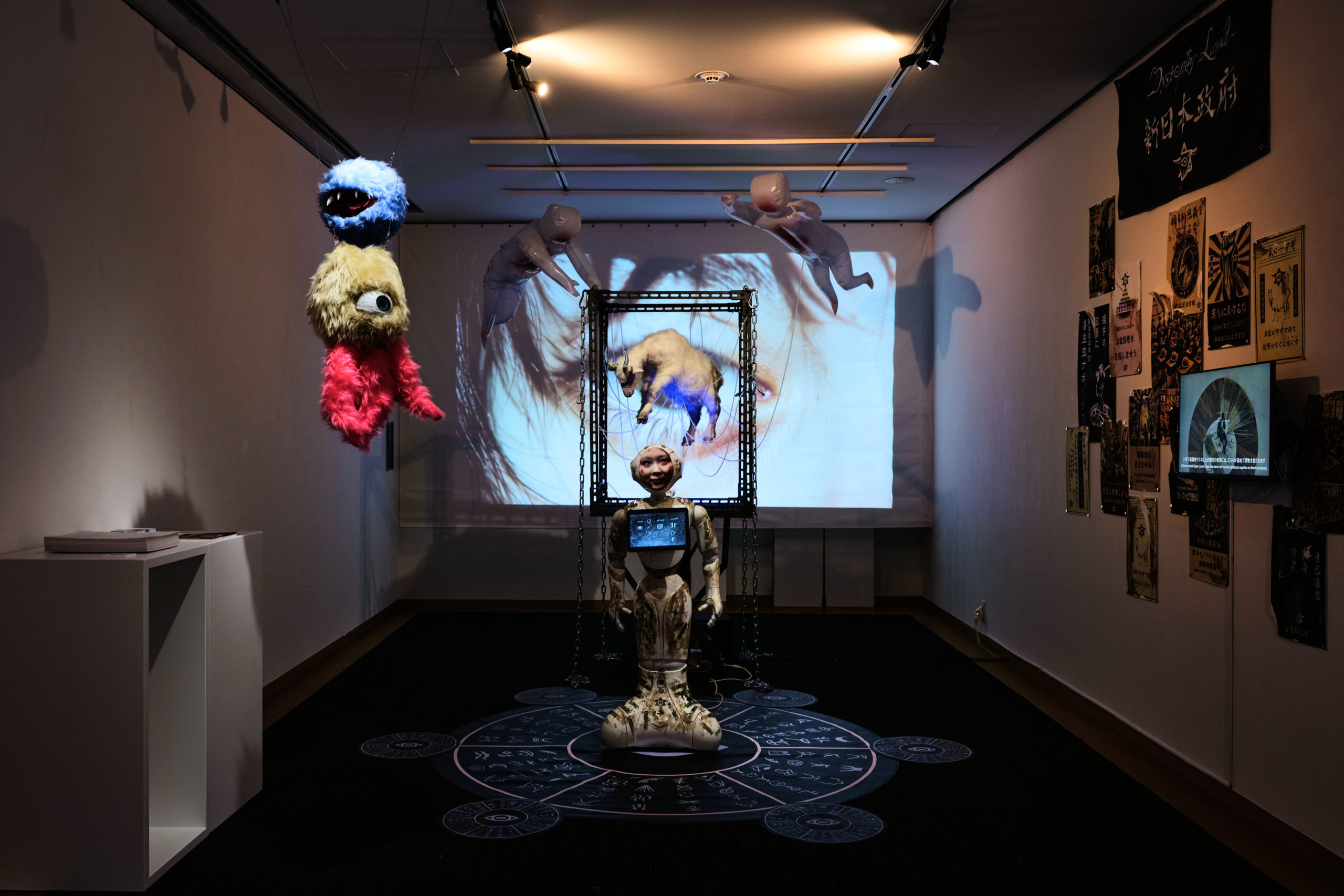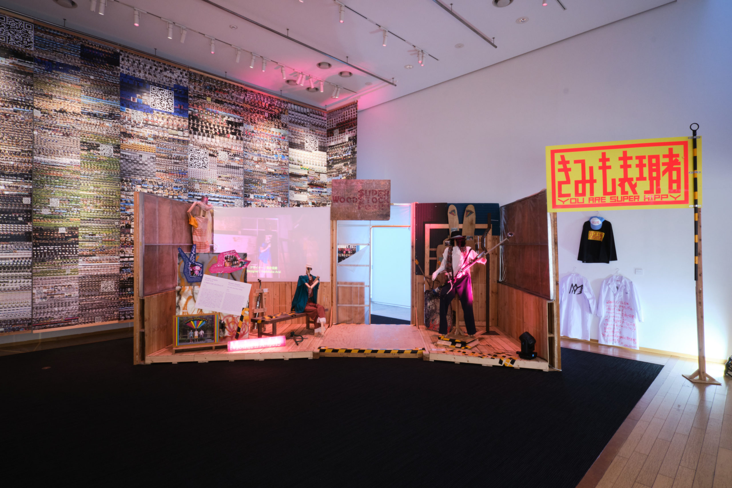 Moche Le Cendrillonは、ドイツ留学中、日本人女性がアニメや風俗的なイメージによって一面的、かつ差別的に捉えられていることに強い衝撃を受けた経験を起点に、こうしたステレオタイプ化した女性像の背景に戦後のアメリカ文化からの影響があることを知り、クイアやフェミニズムに関するリサーチを織り込みつつ、ドラァグ・パフォーマンスのような作品として発表しています。当初パフォーマンスとして成立した作品であることから、展示にあたっての試行錯誤も見られましたが、自身のアイデンティティと、他者からの視線について問い続ける姿勢は、表現者としての強い覚悟が感じられました。パフォーマンスのベースにあるのは、アメリカン・バーレスクのように、コミカルなショーとして演じられるストリップティーズで、これらは1990年代以降、批評性のある自己表現の手段としての再評価が進むものでもあります。戦後にアメリカから日本に伝わった風俗や文化など、自らの背景や歴史を引き受けようとするMoche Le Cendrillonの制作態度は、これからより深い理論的・歴史的なリサーチを続けていくことで、説得力が高まることでしょう。こうした表現は、世界の地域や文化圏によっては受け止められ方が異なる繊細さもありますので、発表する場に応じて作品がどのように受け取られるかを意識しながら、今後も表現を深化させていくことを期待しています。(木村)